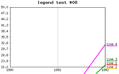 Same as above, but adding a constant value = "50" to data as well as adding a datalegend for this new data set = "--50--". %CHART{name="constDataTest02" type='line' table='table1' data='R2:C4..R99:C7,50' xaxis='R2:C2..R7:C2' title='Constant data test #02' yaxis='on' legend='R1:C4..R1:C7,--50--' ymin='0'}% |