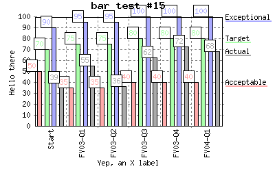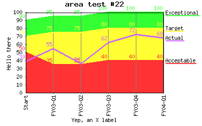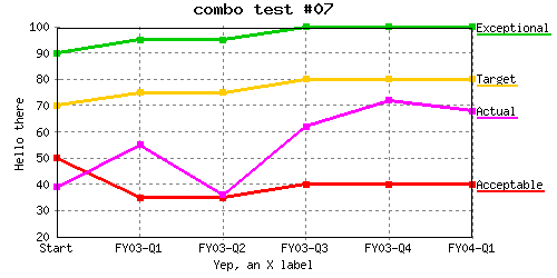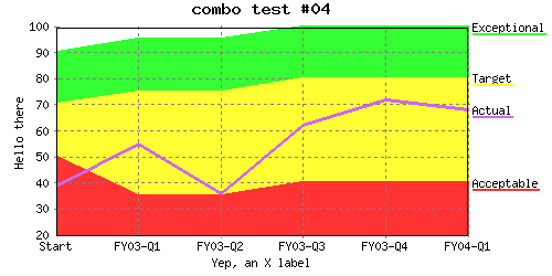 Specify different line colors to above where line "Acceptable" has a color of transparent so the background color will be seen as the line color. %CHART{name='lineTest15b' table='table1' type='line' data='R2:C4..R7:C7' xaxis='R2:C2..R7:C2' title='line test #15b' yaxis='on' ymin='0' ymax='100' ylabel='Hello there' xlabel='Yep, an X label' datalabel='box' legend='R1:C4..R1:C7' colors='transparent,#AAffAA,#AAAAff,#AAAAAA'}% |