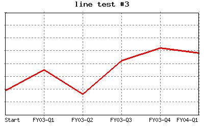 Add X axis lables to above. %CHART{name='lineTest03' table='table1' type='line' data='R2:C7..R7:C7' xaxis='R2:C2..R7:C2' title='line test #3'}% |