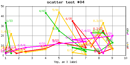 Add Y axis lables to above. %CHART{name='lineTest04' table='table1' type='line' data='R2:C7..R7:C7' xaxis='R2:C2..R7:C2' title='line test #4' yaxis='on'}% |