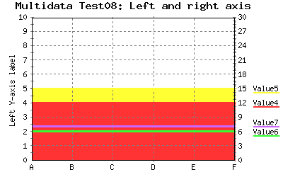 Same as above, but setting subtype2="area, area" and changing ymin2='-5' and =ymax2='10' so data2 data is shown above data data so you can see the area. %CHART{name="multiDataTest10" type='combo' subtype='area, area' subtype2='area, area' table='table6' data='R2:C4..R7:C5' data2='R2:C6..R7:C7' xaxis='R2:C2..R7:C2' title='Multidata Test10: Left and right axis' yaxis='on' yaxis2='on' ylabel='Left Y-axis label' legend='R1:C4..R1:C7' ymin='0' ymax='10' ymin2='-5' ymax2='10' ytics='1' ytics2='3'}% |