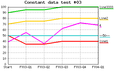 Same as above, but using constant values for legend instead of data from the table. %CHART{name="constDataTest03" type='line' table='table1' data='R2:C4..R99:C7,50' xaxis='R2:C2..R7:C2' title='Constant data test #03' yaxis='on' legend='line 1, Line2,line3 3 3 3,4,--50--' ymin='0'}% |